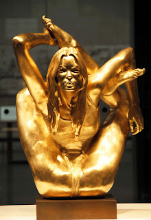 This idiot did. Marc Quinn created a $3 milli gold (not solid, because he wanted to weight as much as the real thing) sculpture of the supermodel. A)The bitch ain’t super. If she is, it might be super lucky that even after her coke scandal and her deadbeat boyfriend Pete, she still lands deals. B) The sculpture is disgusting. Why is her raggedy pussy all on display? I don’t wanna look at that shit. C) Who fancy’s Kate Moss that much to drop $3 milli on her worst look ever? I would rather pay $3 milli for a book full of pictures with her coked outta her mind.