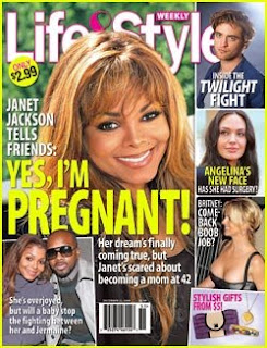 The cover of Life & Style magazine reads: “Yes, I’m pregnant” and has Janet Jackson on the cover. Now Life & Style doesn’t have any cred points with me, so who knows if Janet is preggers (it would explain why she didn’t do so hot on her tour). What is interesting to me is the question: do the other Jackson let Mikey play with their kids? Would you let your brother play with your kids if he was taken to court twice on child molestation charges? I guess they prolly know him better than we do, or do they? Maybe they think he really is bein unfairly targeted because he’s rich and famous and likes to bounce kids in the middle of his lap. I guess I wouldn’t leave my kids alone with uncle Mike if I was them lol.