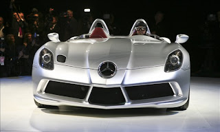 Anyone that knows me knows that I would sell my step daughter for an SLR McLaren (hmmmm, maybe that’s how I’ll stick it to Frenchie). Mercedes is making the last of them this year, with the last one to leave the lot in ’10. Sad, pure sadness. And Mercedes decided to finish off with an ultra rare (75 being built, only being sold to current SLR owners that don’t live in the U.S.) SLR McLaren Stirling Moss Edition. There is some heritage behind this one of course, the namesake “legendary British racer Stirling Moss, who in 1955 set a speed record by driving an equally legendary Mercedes 300 SLR to victory in the Italian Mille Miglia, a thousand-mile cross-country race so grueling and dangerous that it was banned after a fatal crash in 1957 that killed two participants and 11 spectators.” (MSN autos). Ah fuck fuck fuck fuck fuck fuck fuck. Fuck. Keep the SM edition; will someone PLEASE get me the regular version of the SLR? But this one is a beauty too, no doubt, I just don’t wanna get attached.