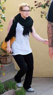 Hmmm, I think I can sense an accessory trend for the ’09 spring/summer. The librarian look. Work with me here. Black rimmed glasses, hair pulled back or in a bun, pearl earrings and/or necklace. It would be such a better look than the 08/09 winter look of…scarves scarves and more scarves. And it doesn’t matter what the outfit is, because it would be the librarian at (insert event here). Here is Hilary Duff transitioning from one look to the other. This would be the librarian at yoga, or leavin yoga. Whatdaya think? Can this look start poppin off with the masses?
