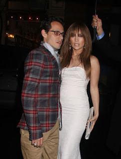 I still can’t figure out what attracted J.Lo to Marc Anthony. He can’t dress. He doesn’t look like he tells good jokes. She oozes sexy. He just oozes. Well here they are with J.Lo lookin a bit like Jenny circa In Living Color, but with blonde hair.