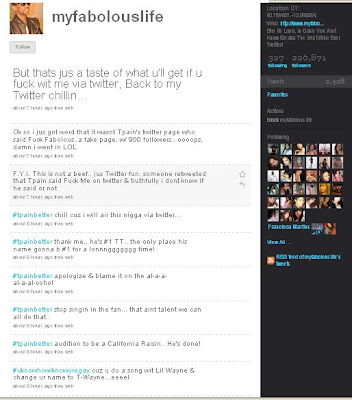 Ok, so I’m kinda confused on when Twitter became the official voice of hip-hop. Really? We gonna battle on Twitter now? Niggas ain’t even gonna try to make diss records any more? SUPER LAZY!!! I guess Fab eventually realized that T-Pain ain't talk shit about him because he changed his [auto]tune later: